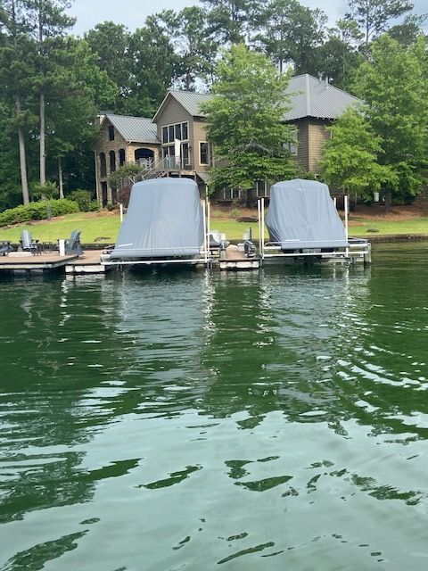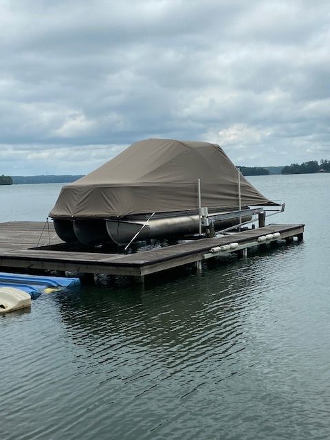 Our mechanisms attach directly to your existing 4-pole lift (don’t have one? We can provide that, too!) and operate hydraulically with solar power. Each cover is custom-made for your boat using precision laser measurements. Crafted from high-performance marine fabric, it’s breathable, water-resistant, UV and abrasion resistant, non-fraying, and mold-defensive. The design secures down to the waterline on V-Hull boats and fully around the deck on pontoons—protecting both the interior and exterior of your vessel.